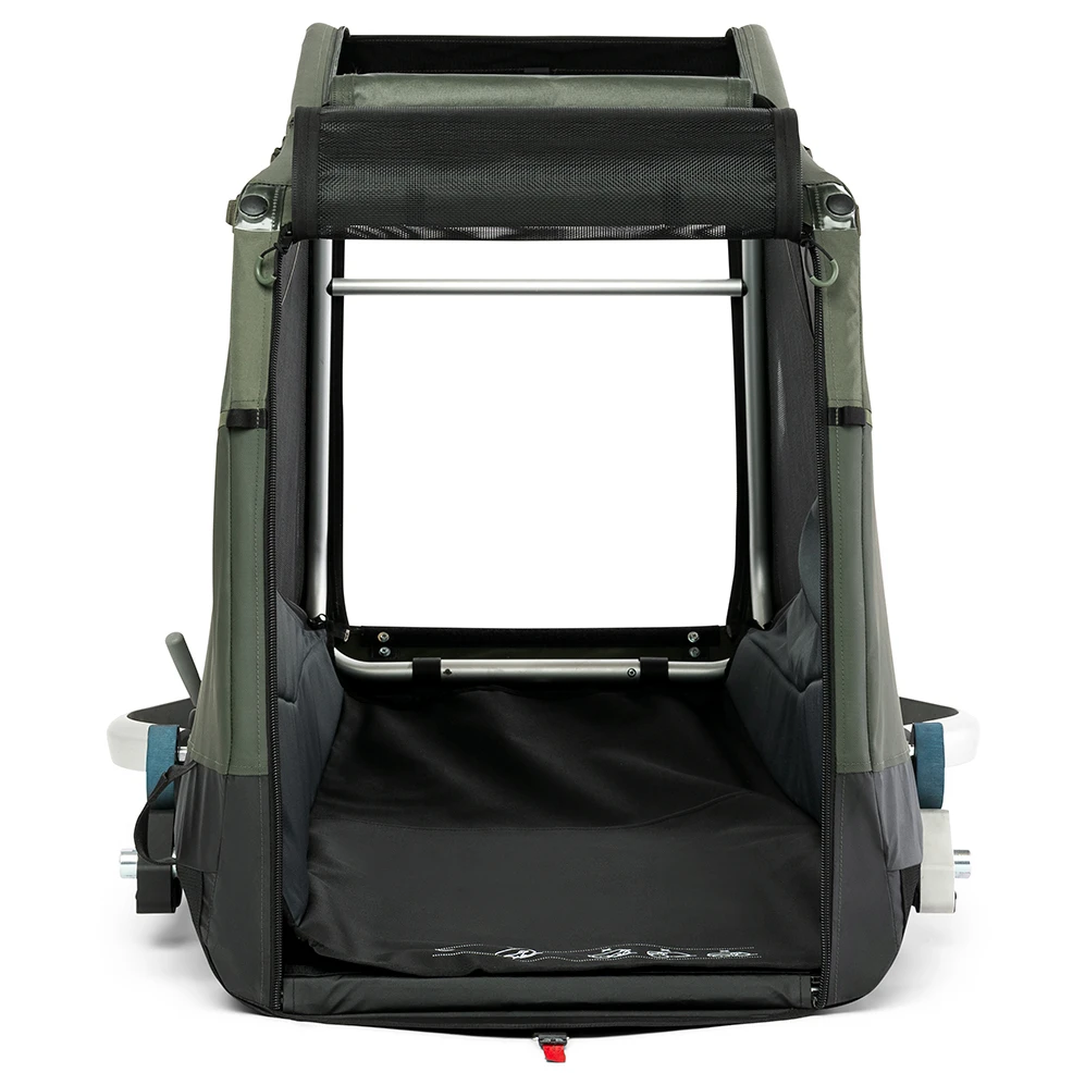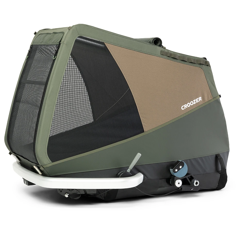 The Croozer Dog Mikke is the perfect trailer if you want to explore the world together with your dog. Made of durable materials, the outdoor tyres and the special Croozer AirPad suspension ensure comfort even when adventuring off road. Your four-legged friend can comfortably sit or lay down inside. Thanks to the convertible openings in the front and at the top, your dog can stick out their head to enjoy the sunshine and wind.