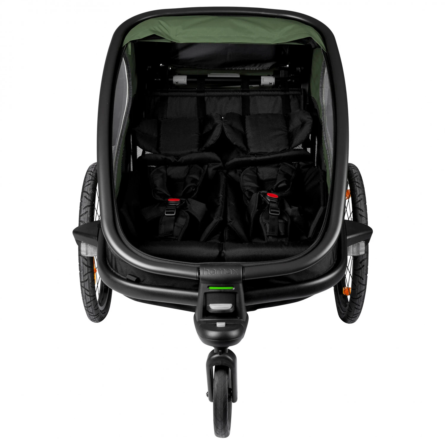 The Hamax Outback is comfortable on the inside. There are large windows that offer your child a good view. In addition, the trailer is easy to fold and transport and can be used on various types of terrain. Plus, it features an adjustable suspension to ensure a smooth and comfortable ride. The seat can also be placed in three different positions or completely removed.