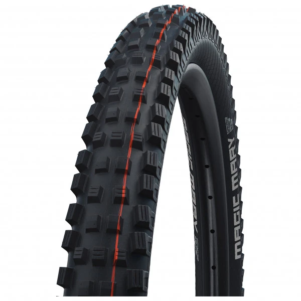 Strong shoulder knobs and the aggressive, open tread design offer good braking traction and grip whilst cornering, even on muddy grounds. The V-Groves developed for Magic Mary ensures that each individual knob interlocks with the ground for even more grip. The chamfered flat knobs in the centre optimise the rolling behaviour.